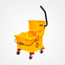 Balde de 36L resistente con prensa escurridora ideal para limpieza profesional. Fabricado en plástico de alto impacto, con ruedas giratorias para fácil desplazamiento.